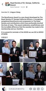Dr. Lingyun Xiang Receives the “Beneficence Award” from the Royal Society of St. George, California Branch
