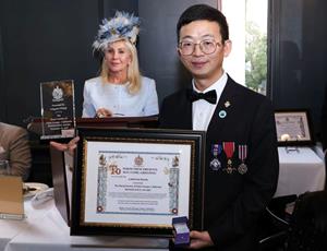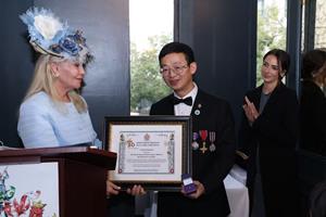 The award recognizes Dr. Xiang’s four years of unwavering commitment, volunteer service, and meaningful contributions to the Royal Society of St. George. According to the inscription: